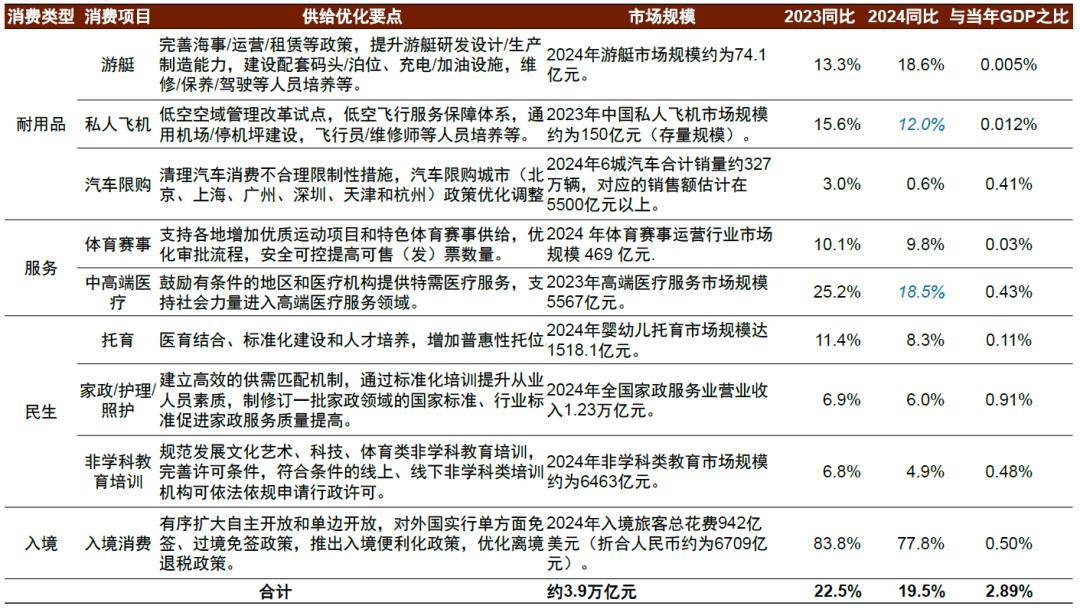 平博体育,平博体育官方网站,平博体育APP下载和往年相比,2025年下半年促消费的政策对供给侧的关注度明显提高,12月中央经济工作会议要求“扩大优质商品和服务供给”、“清理消费领域不合理限制措施,释放服务消费潜力”[1],均指向了供给侧促消费。我们认为,供给侧促消费或从清理消费领域限制和扩大优质消费供给两方面着手,释放消费潜力。其中,清理消费领域不合理限制措施,可能主要围绕放宽准入、优化监管、减少消费限制等方面来展开;增加优质消费供给,主要是加强消费配套设施建设,培育消费产业发展。根据我们的不完全统计,2024年,部分政策调整可能涉及的消费市场规模约3.9万亿元,为当年GDP的3%左右(这些领域合共每提升10%,最终消费增速可能提高0.5个百分点)。