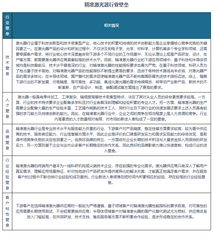 这一市场格局在细分领域中同样显著。在量子科技领域,德国Toptica、美国Spectra-Physics、丹麦NKT、美国 RIO等企业,凭借深厚的技术积淀与长期的科研场景应用经验,在全球范围内树立了较高的行业知名度;即便是在国内市场,德国Toptica也依然占据着较大的市场份额。在半导体领域,受限于行业整体国产化率偏低的现状,国产晶圆制造与量检测设备中所采用的精准激光器产品,也主要依赖进口与少数本土头部企业供应,供应主体包括美国Coherent、日本Oxide、美国IPG等国际厂商,频准激光、卓镭激光、长春新产业等国内代表企业。
